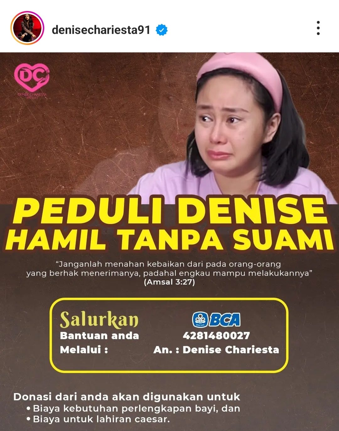 Denise pun menyampaikan bahwa sejauh ini donasi yang didapatkannya baru terkumpul sebanyak Rp7jutaan. Sementara biaya yang dibutuhkan tentu saja lebih dari itu. Tidak lupa, Denise juga menghimbau kepada netizen untuk ikut berdonasi untuk dirinya.