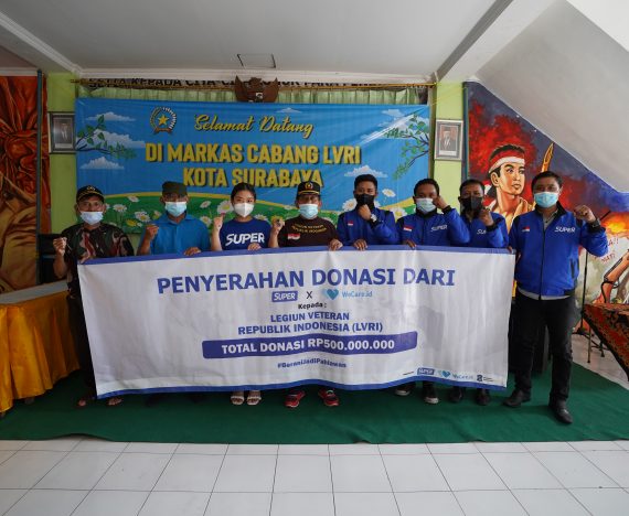 Penyerahan donasi secara simbolis dilakukan Jumat, 5 November 2021 lalu. Acara yang berlokasi di Super HQ ini dihadiri oleh Wali Kota Surabaya Eri Cahyadi, serta Ketua LVRI Brigadir Jenderal TNI Marinir Purnawirawan Subagyo Rahman. Melalui kesempatan ini, keduanya menunjukkan dukungannya bagi Aplikasi Super sebagai startup buatan anak bangsa yang berupaya menciptakan perekonomian lebih baik bagi masyarakat.
