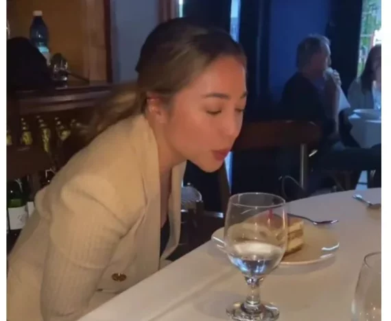 9. Dalam potret yang lain, terlihat ibu satu anak itu meniup lilin.