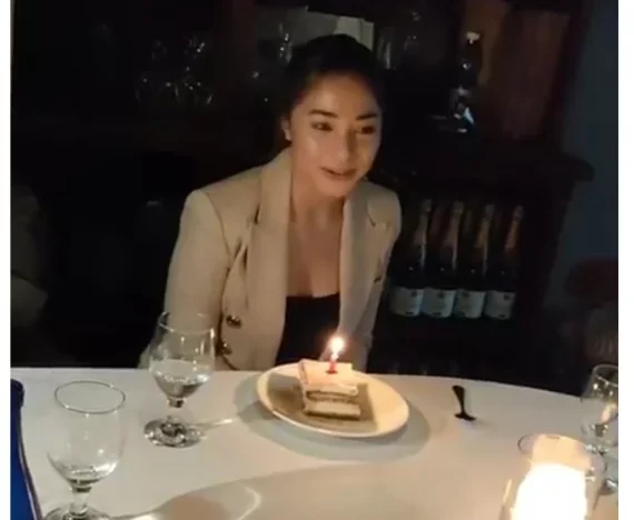 7. Nikita Willy terlihat mendapatkan hadiah berupa sepotong kue dan lilin.